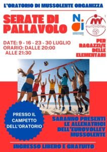 Ore 20.00 Serata di Pallavolo NOI + Eurovolley Mussolente per ragazzi delle elementari al campetto dell’oratorio